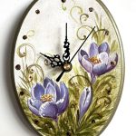 Ceas oval din lemn, pictat manual cu branduse vesele si detalii aurii. Ideal pentru bucatarie. hol. living, birou. Poate deveni un cadou memorabil cu tematica de primavara, pentru o persoana draga. Acest ceas oval ca un mic tablou este surpriza ideala.