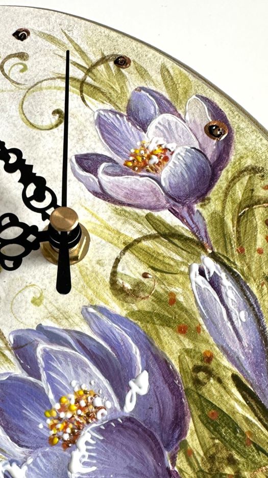 Acele ceasului sunt metalice, iar mecanismul functioneaza pe baterii si se poate agata pe perete. Ceasul are dimensiunile de 20 x 15 cm. Nu necesita asamblare, si se livreaza in conditii de siguranta. Cadranul este pictat manual in atelierul Suba Decor, dar mecanismul nu este realizat in atelierul nostru.