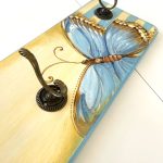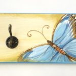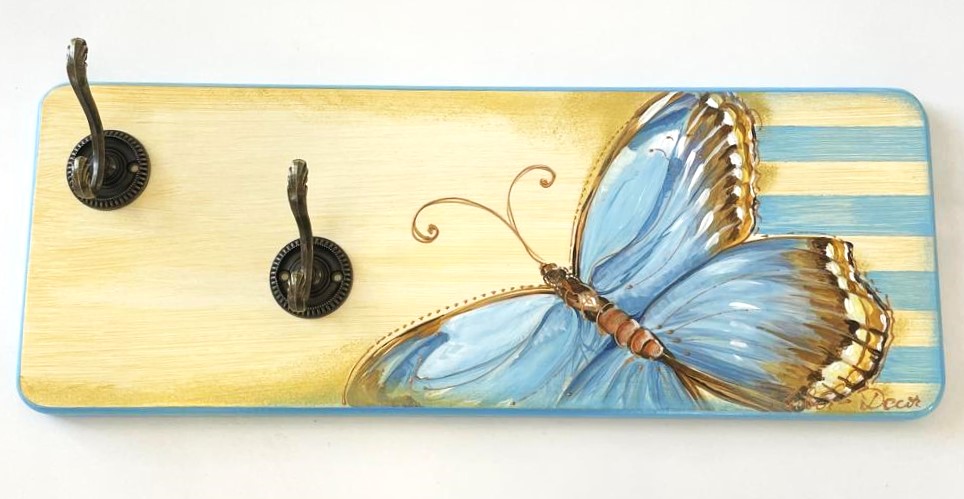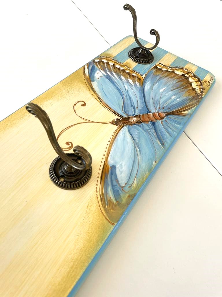 Cuier din lemn cu fluture albastru