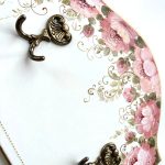 Cuier din lemn pictat manual cu trandafiri roz, patina si accente aurii.