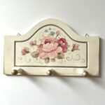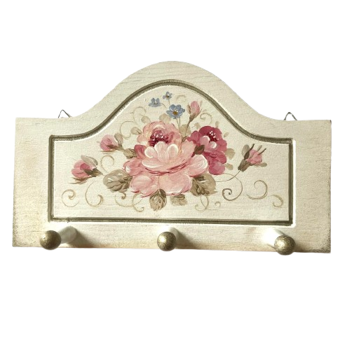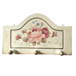 Cuier mic din lemn, pictat cu trandafiri