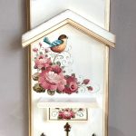 Cuier de perete din lemn, pictat manual cu trandafiri roz pastel, vrabiuta si detalii aurii. Pictat manual de catre artistii atelierului Suba Decor, aduce o frumusete si un design aparte oricarei incaperi.