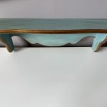 Etajera albastra, patinata manual in nuante de albastru pastel si dungi aurii. Cu o estetică ce amintește de perioadele clasice, aduce eleganța în contemporan. Formele rafinate și culorile sofisticate creează un cadru deosebit în orice încăpere. Auriul adaugă strălucire, iar patina fină oferă o senzație de autenticitate.
