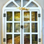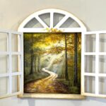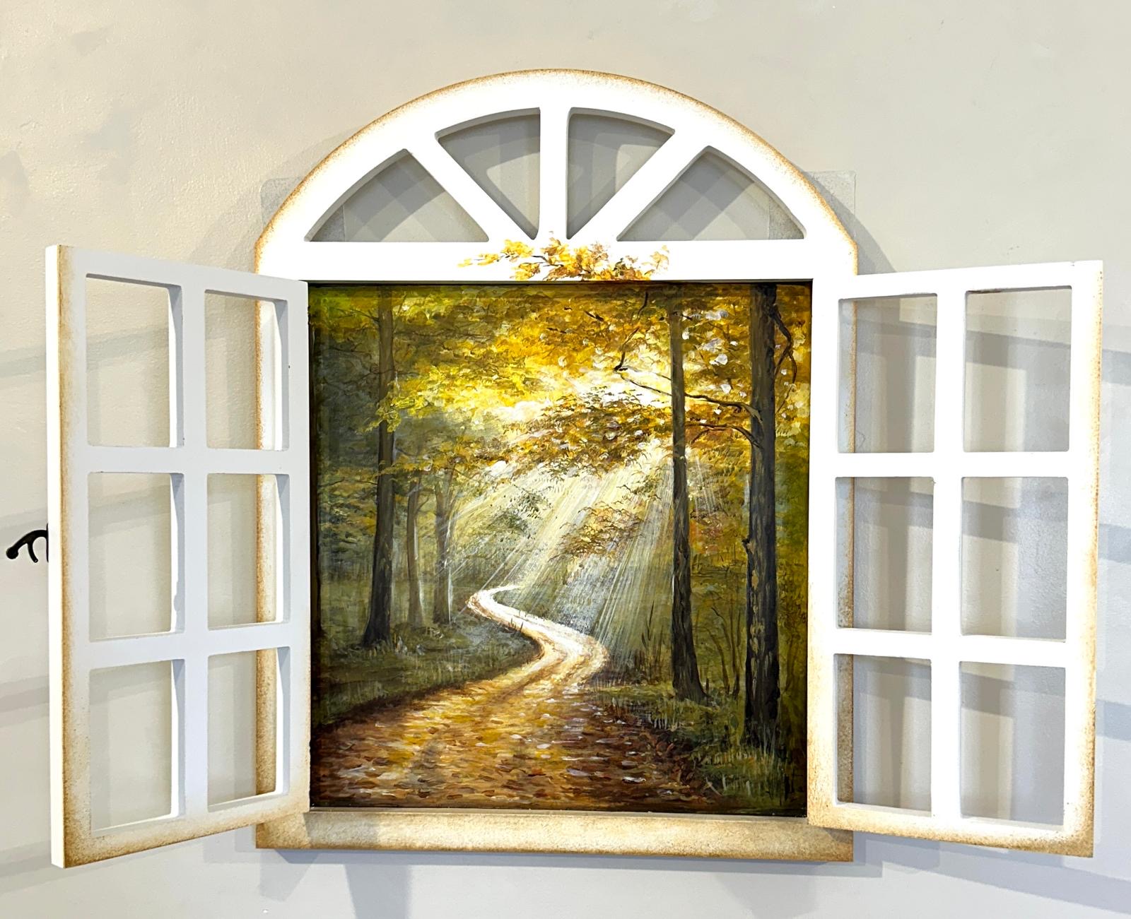 Fereastra de lemn pictata manual cu peisaj