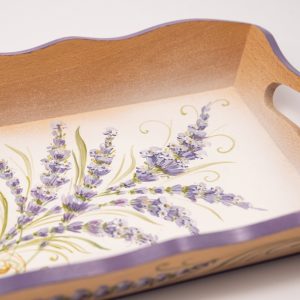 Platou servire de lemn pictata si patinata manual cu lavanda. Poate fi asezata pe perete sau platou servire, decorare. Pictat si patinat manual cu tematica de lavanda. Un obiect unic si deosebit in decorarea si personalizarea casei tale sau un cadou perfect cuiva drag. Poate fi un tablou deosebit pe peretele unei camere sau un platou servire pentru ceai sau altele. Dimensiunea suportului este de 35 cm diametru. Disponibil si cu manere, verificati site.