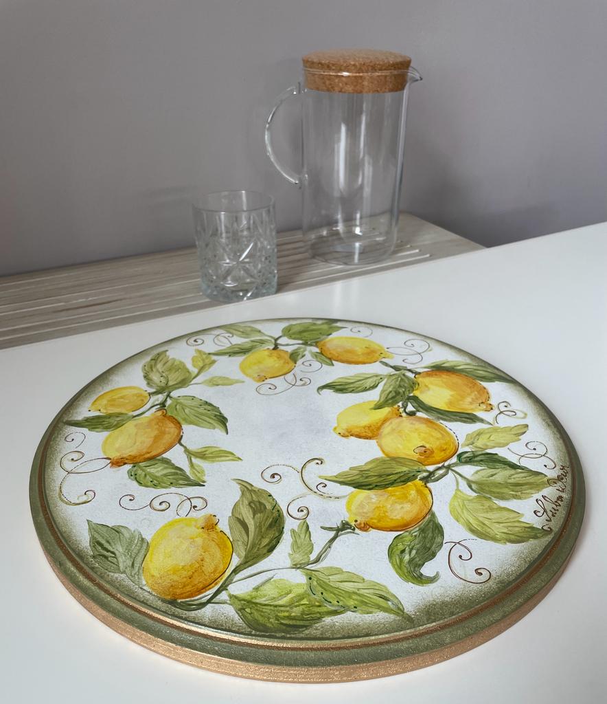 Platou servire pictat manual cu lamaie