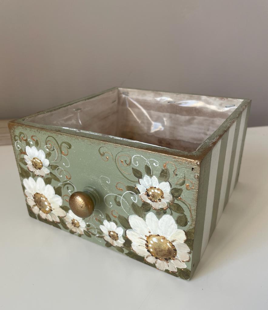 Sertar din lemn pictat cu margarete