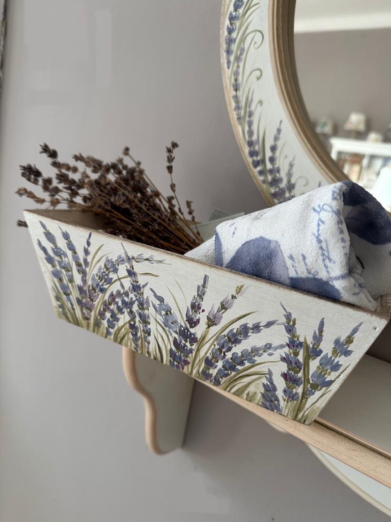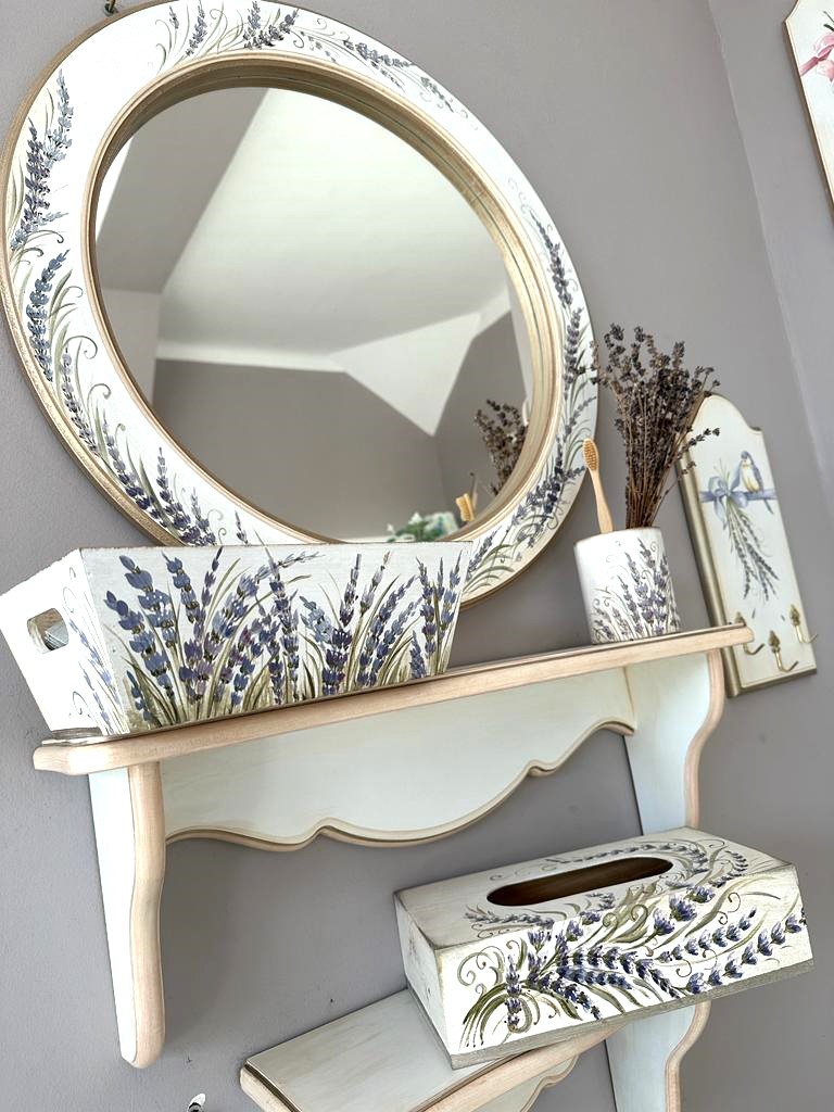 Set pentru baie pictat manual cu lavanda.