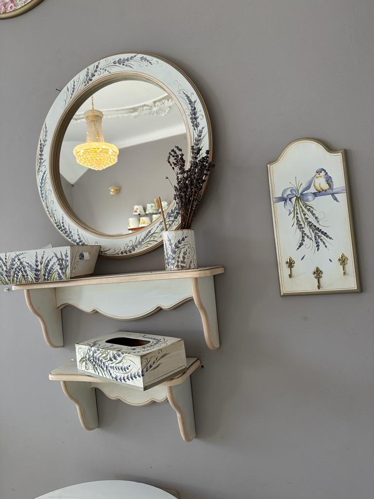 Acest set de baie pictat cu lavanda este construit pentru a rezista în timp. Realizat din MDF calitativ si lemn, vopsit în culori vibrante și acoperit cu un strat transparent de lac. Rezistente la umezeala, zgârieturi sau alți factori. Procesul manual de finisare asigură o calitate deosebită, iar baia dumneavoastră va arata cu adevărat deosebit!