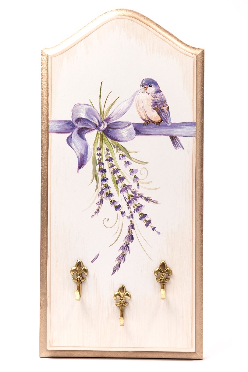 Lavanda realizata manual, împreună cu elementele decorative creează un set elegant și rafinat, care vă completează decorul și mobilierul de baie. Nuanțele de bej, albul imaculat și dungile argintii subtile se îmbină armonios.
