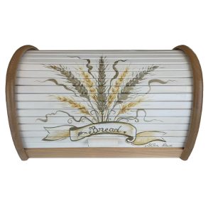 Cutie de paine, pictata cu natura statica cu produse de patiserie, in nuante de brun. Are dimensiunea de 39x25x21cm.