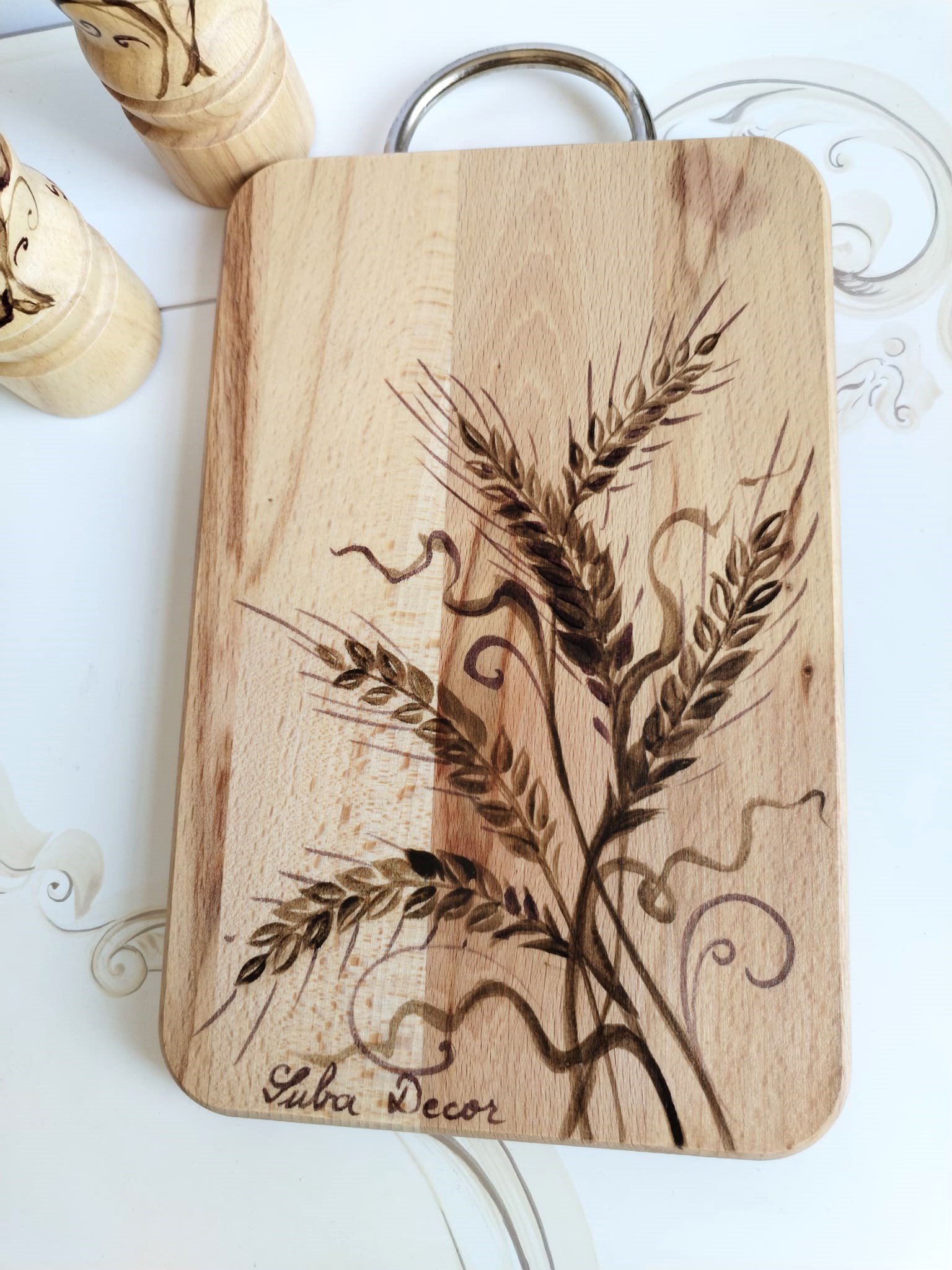 Tocătorul ajuta la prepararea mancarii sau pentru servit, fiind si foarte estetic in acelasi timp. Cu ajutorul picturii, devine un obiect pe care il poti aseza la vedere, completand decorul bucatariei. Se poate folosi partea fara pictura, pentru tocat. A nu se curata in masina de vase. Are dimensiunile de 26×15 cm.