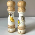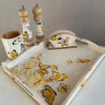 Acest set de bucatarie pictat cu fluturi galbeni ofera un aspect vesel, si este pictat cu grijă în atelier. Ne asigurăm că fiecare piesă este foarte plăcută estetic. Materialul ales este lemnul, asigurând rezistență în timp.