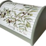 Cutie de paine, pictată cu crengute de maslin. Are dimensiunea de 39x25x21cm.