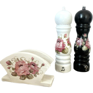Suportul de șervetele completează setul, și este necesar în timpul servirii mesei. Cu aspect plăcut, se poate așeza împreună cu râșnițele. Are dimensiunile de 14x8x4 cm.
