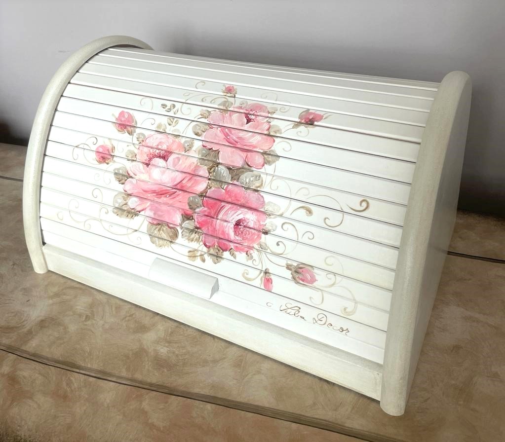 Cutie de paine, pictată cu trandafiri. Are dimensiunea de 39x25x21cm.
