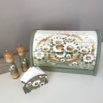 Set pictat manual, pentru organizarea si decorarea bucatariei. Acest minunat set este compus din două rășnite din lemn, o cutie pentru pâine, o tavă rotundă și un suport de servetele, toate pictate cu motive de margarete și patină. Fiecare piesă evidentiaza frumusețea delicată a acestor flori îndrăgite. Cu designul său atrăgător și detaliile atent realizate, acest set adaugă un aer de eleganță și prospețime în orice spațiu. Fie că este utilizat în bucătărie, în living sau într-o masă festivă, acest set va impresiona cu siguranță prin aspectul său distinctiv și rafinat.