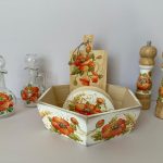 Set pentru organizarea si servirea mesei, pictat manual cu maci, care contine urmatoarele: