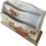 Suport de lemn pentru tacamuri sau servetele pictat cu maci