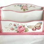 Cutie de lemn pentru aranjament tacâmuri, servetele ,scrisori sau facturi. Aceasta este pictata manual in atelierul Suba Decor cu trandafiri roz si un fluturas. Dimensiunea suportului este 27cm lungime, 16cm adancime, 8,5cm latime. Decoreaza locul de luat masa cu aceasta decoratiune deosebita.