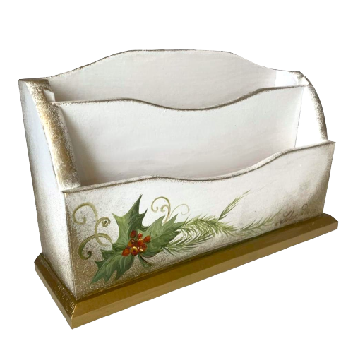 Suport pentru tacamuri pictat cu ornamente de Craciun