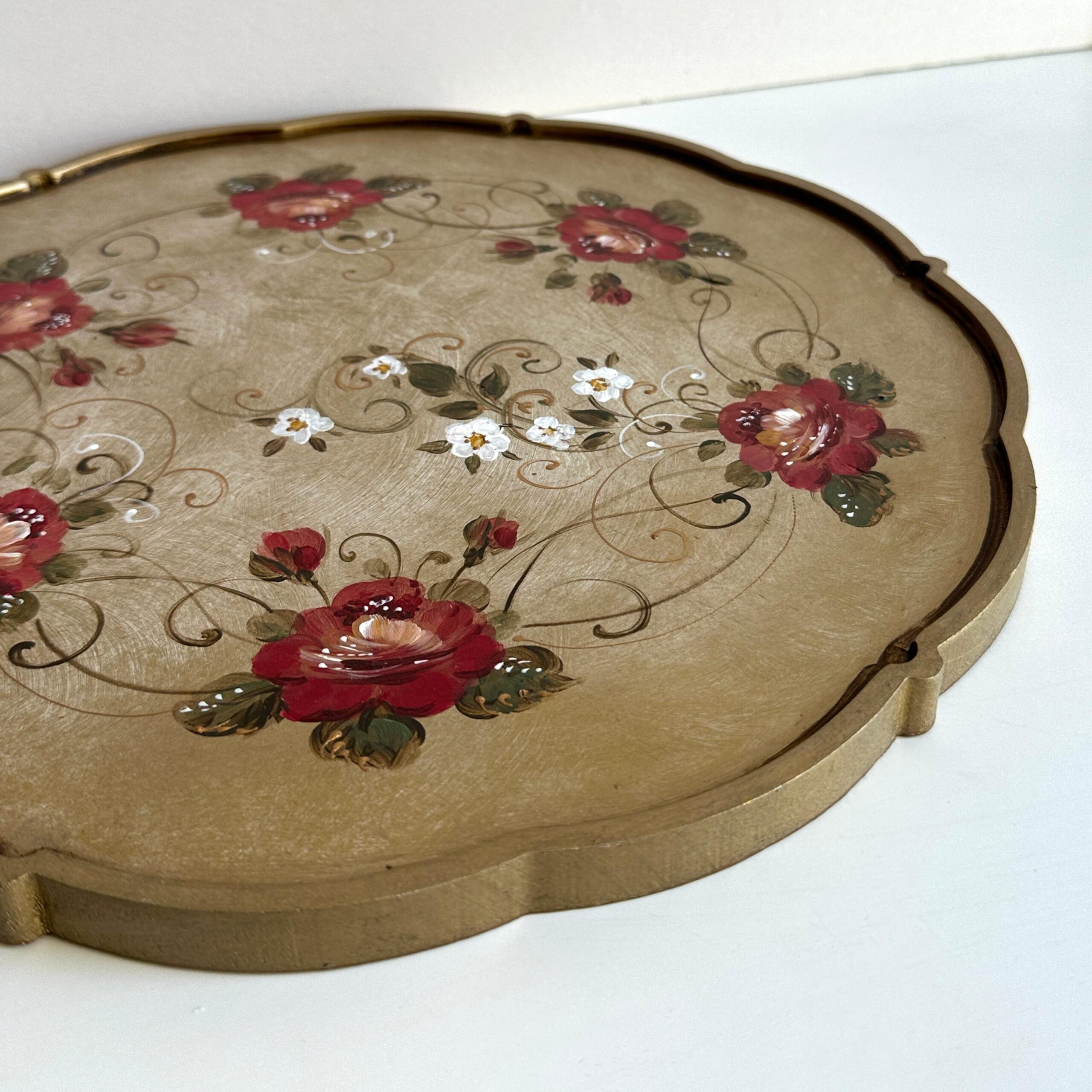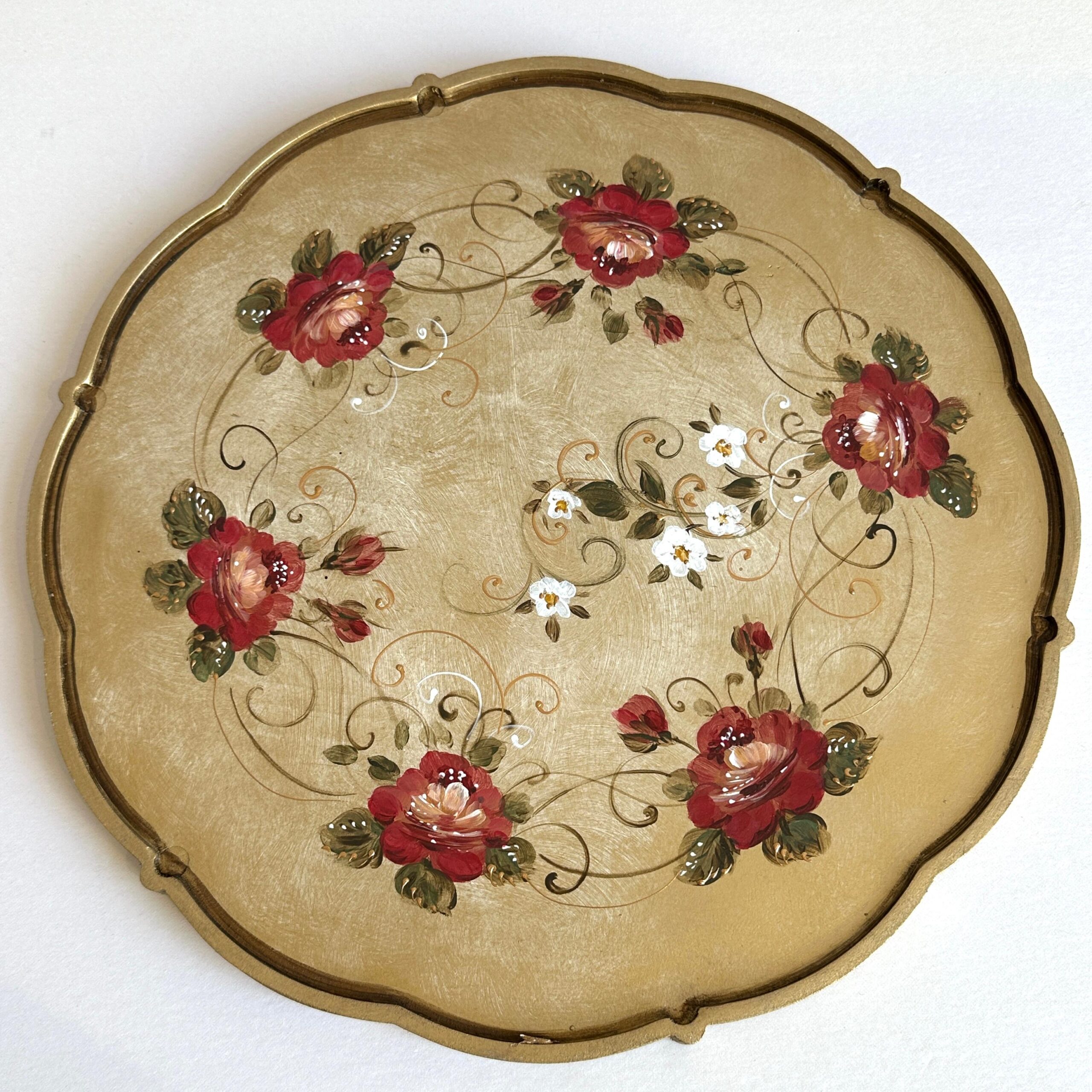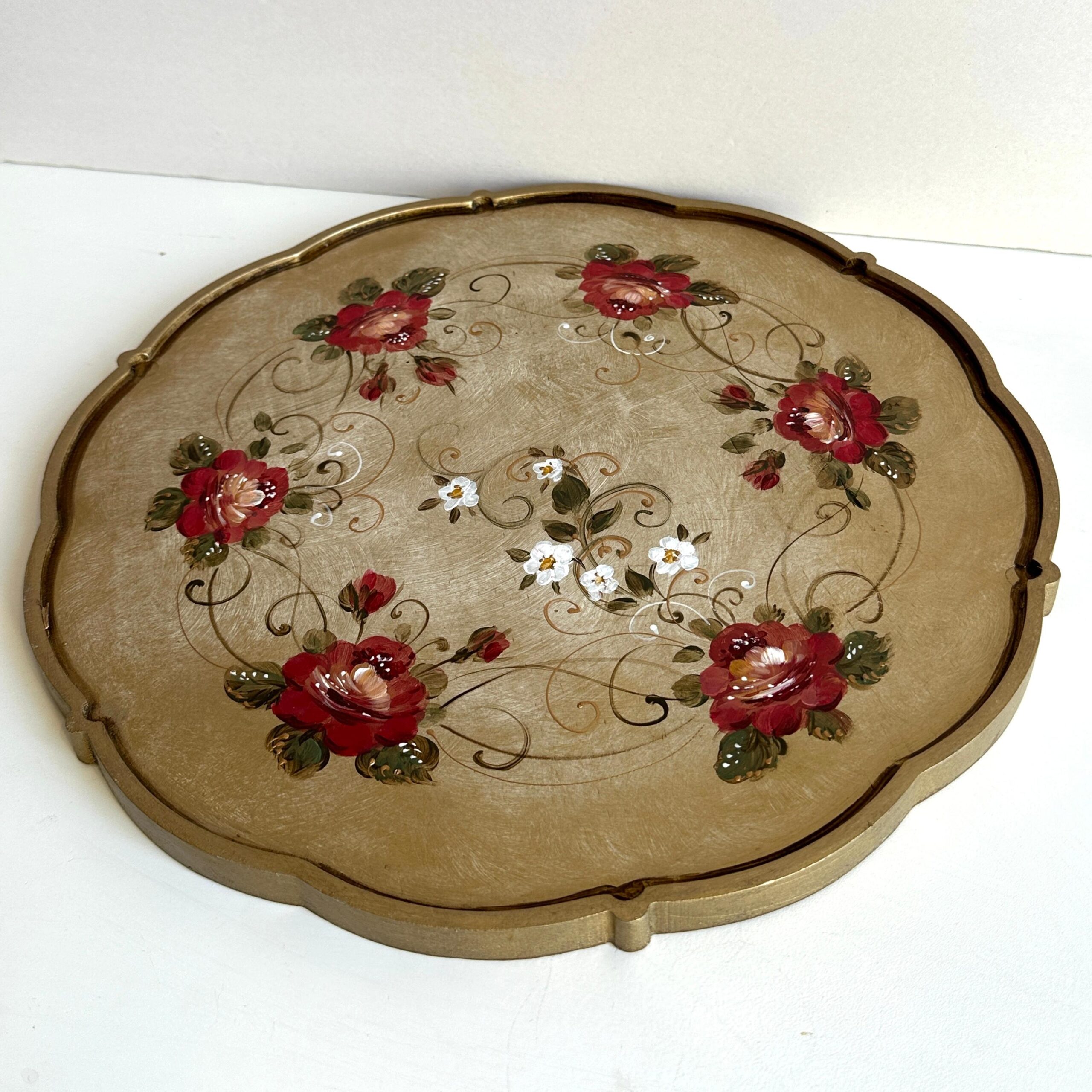 Tava rotunda pictata manual, din lemn. Ideal pentru servit masa, ca suport pentru farfurie, tava pentru cafea, ceai sau desert, sau ca si decoratiune. Alaturi de o ceasca de cafea sau ceai, are un aspect minunat.