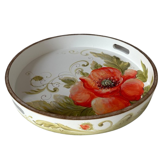 Tava rotunda din lemn pictat cu diametrul de 40 cm si 5 cm inaltime, pictat manual de catre artistii atelierului Suba Decor. Mai multe modele de platouri si tavi gasiti la categoria Bucatarie.