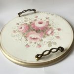 Tava rotunda din lemn pictata manual cu flori de trandafiri in nuante pastelate, si detalii aurii. Are diametrul de 35 de cm si doua manere metalice. Se poate folosi la servirea cafelei, ceaiului sau desertului. Are rol foarte estetic dar si practic. Ideal pentru dvs sau cineva drag!