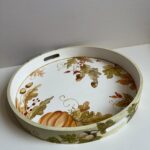 Tava din lemn cu bordura, pictat manual in nuante pamantii,avand ca tematica la pictura:frunze,ghinda,macese si alete minunatii inspirate din natura. Ideal pentru un decor unic,la locul de servit masa, ca suport pentru farfurie, tava pentru cafea, ceai sau desert, sau ca si decoratiune. Alaturi de o ceasca de cafea sau ceai, are un aspect minunat.