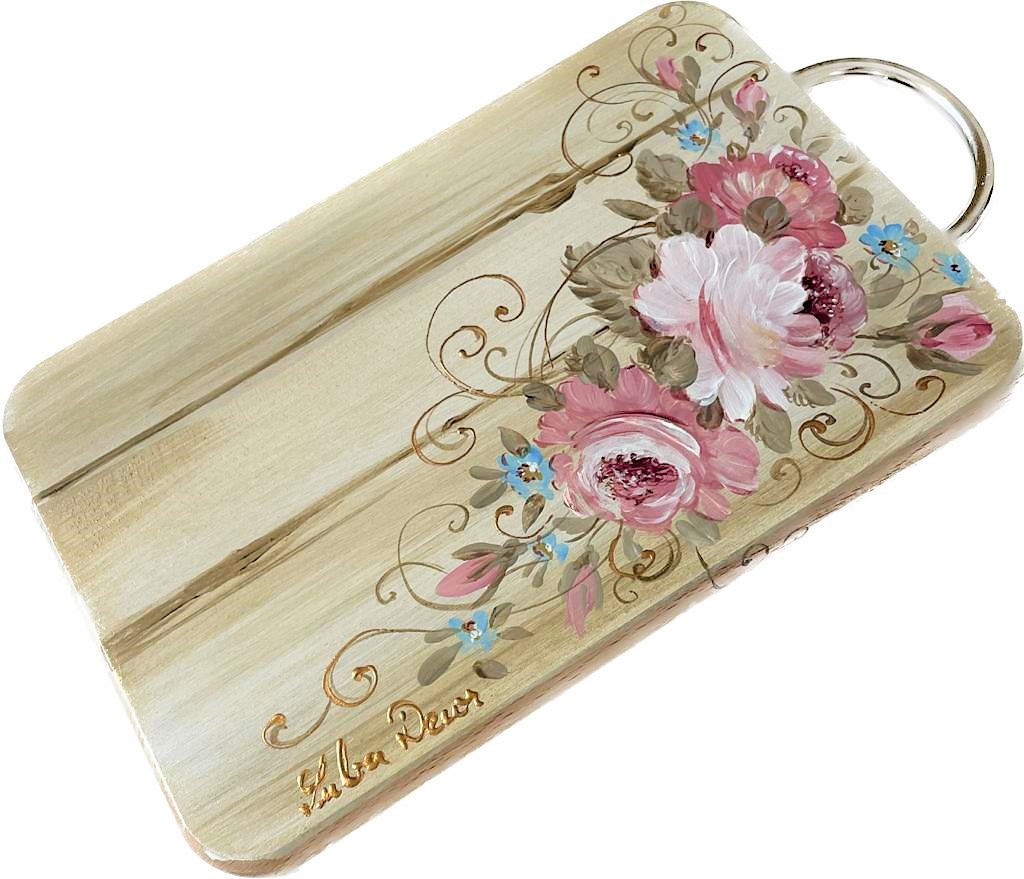 Descoperă frumusețea și funcționalitatea tocătorului din lemn, un accesoriu esențial pentru bucătăria ta. Realizat cu atentie, acest tocător este pictat și patinat manual, prezentând un design încântător cu flori de trandafiri în culori delicate de roz pastel. Lemnul natural conferă un aspect rustic și o textură plăcută, iar mânerul metalic facilitează manevrarea. Indiferent dacă pregătești legume proaspete, fructe sau carne. Acest tocător te va ajuta să tai și să toci ingredientele într-un mod practic și estetic. Adaugă o notă de farmec și feminitate în bucătăria ta cu acest tocător cu flori de trandafiri. Realizat cu atenție la detalii, acesta este un accesoriu versatil și durabil, potrivit pentru utilizare zilnică.