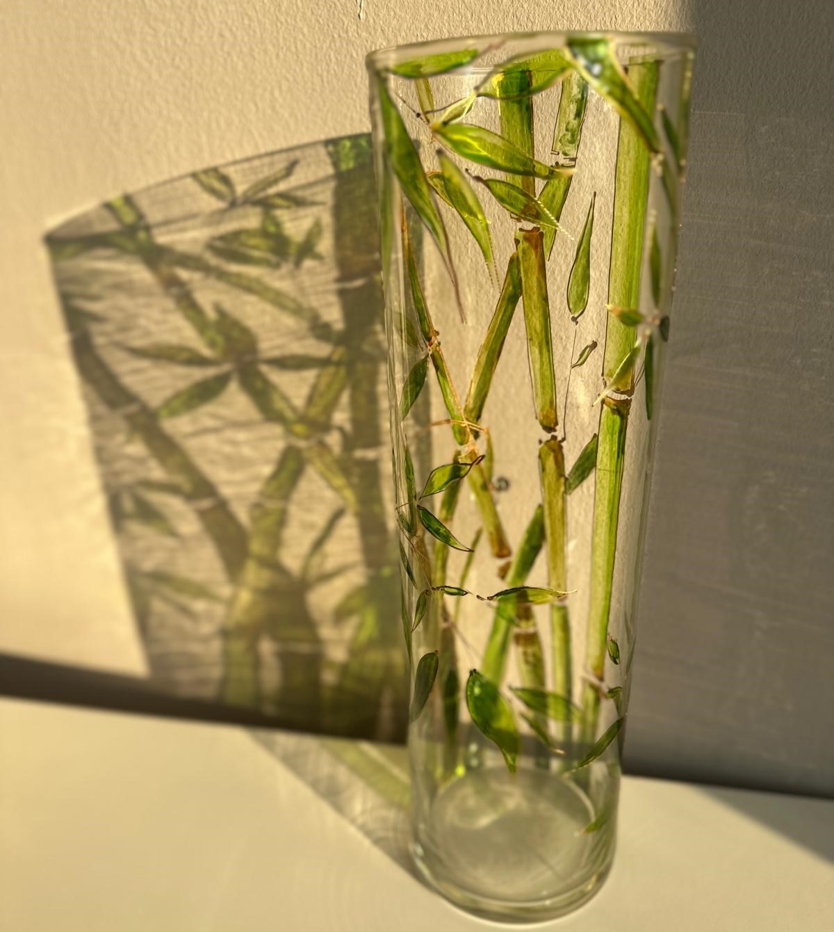 Vaza din sticla pictata cu bambus
