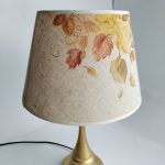 Veioza pictata cu frunze de toamna, cu picior metalic si abajur textil bej cu aspect vintage. Pictat cu vopsele de inalta calitate, care isi mentin culoarea vibranta. Nuantele calde de rosu, portocaliu si auriu creeaza un decor deosebit.