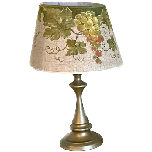 Veioza pictata manual cu struguri in stil vintage, cu picior auriu. Ideala pentru noptiera din dormitor, creeaza un aer elegant cu aparenta sa. Pictura este pe panza rezistenta in timp. Dimensiunile sunt de 50x30cm, pictat manual in atelierul Suba Decor.