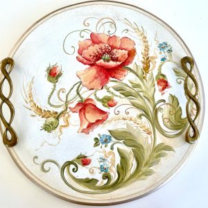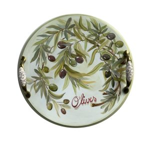 Tava rotunda din lemn pictat manual cu vita de vie